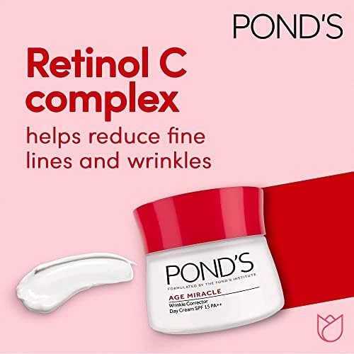 About this item Pond’s Age Miracle gives you a youthful glow and brightens your skin while reducing the appearance of fine lines and wrinkles Pond’s Age Miracle creams are powered by 10 percent Retinol C Vitamin B3 Complex to fight and prevent early aging signs. Pond’s Age Miracle Day cream contains SPF 18 PA which protects from UV rays that may cause wrinkles and fine lines. Pond’s Age Miracle Night cream is powered by 10 percent Retinol C , Vitamin B3 Complex to fight and prevent early aging signs Pond’s Age Miracle face creams contains 4D Hyaluronic Acid Prebiotic for collagen boosting, intense hydration and nourishment to help fight wrinkles and dullness.